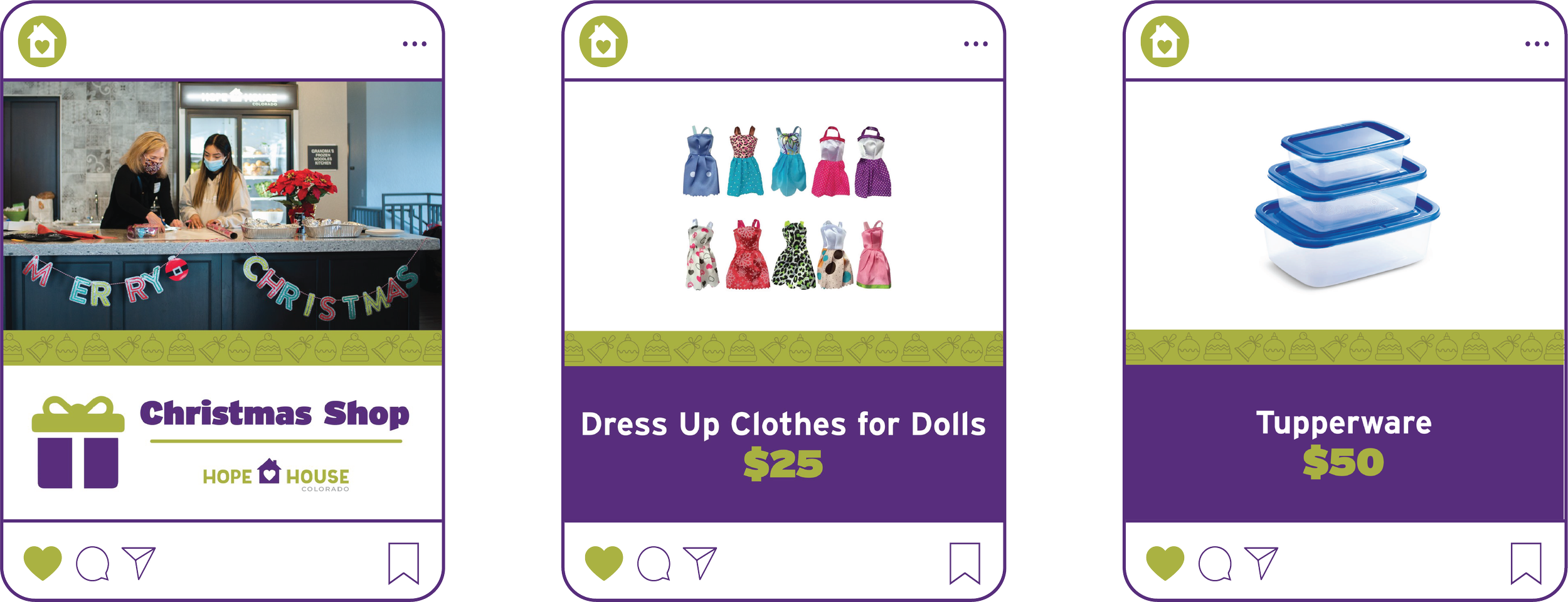My main responsibility while at Hope House Colorado was to create designs for direct mail marketing, social media marketing, and website design. In order to create a repeatable process, I went through Hope House’s branding with my supervisor and created brand guidelines and standards that are reflected in the brand guide. Additionally, I continued to create easy ways for staff and donors to access these pieces of branding.