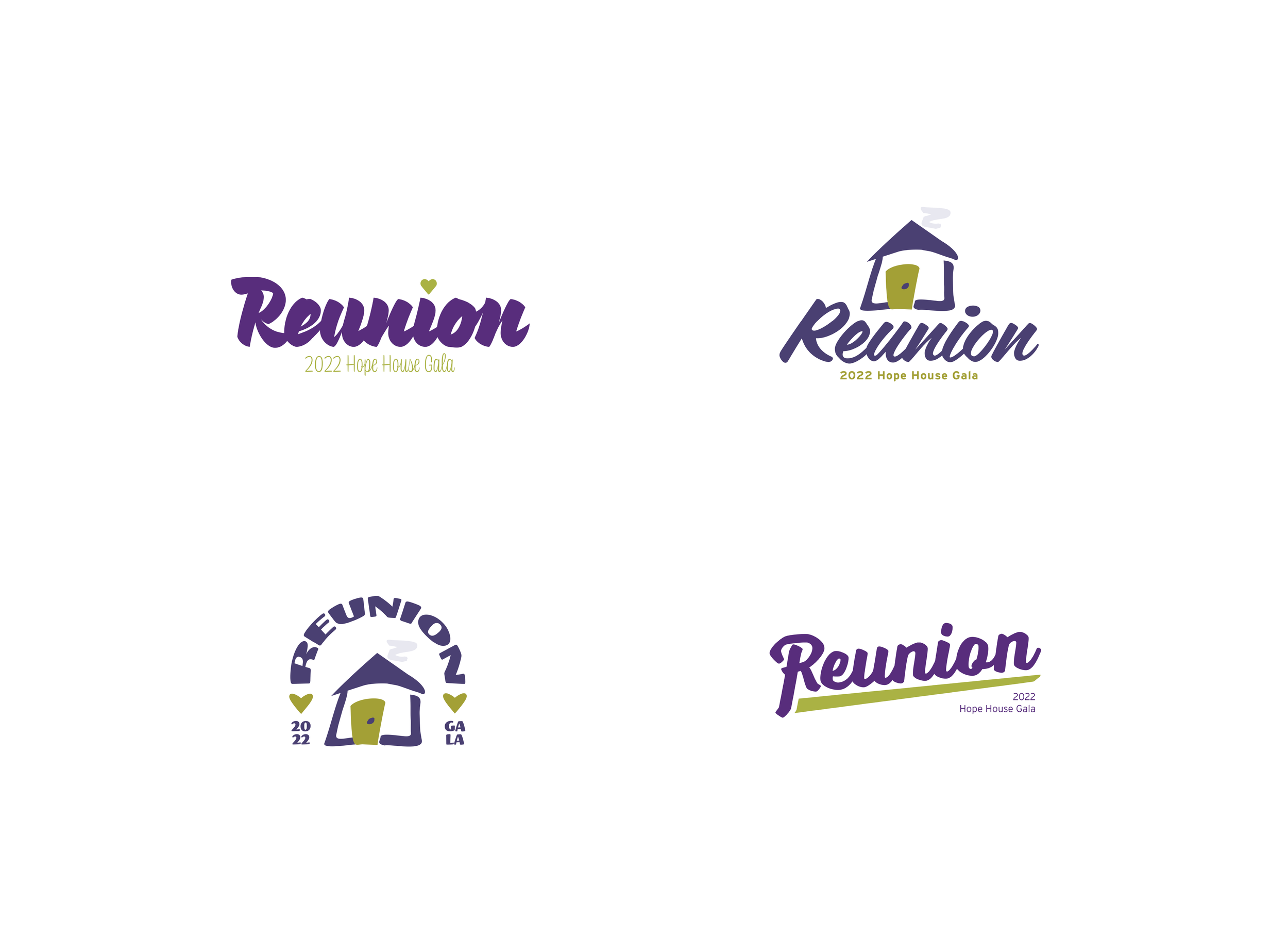 Each year, Hope House Colorado hosts a gala fundraiser event somewhere in the Denver-metro area. Each Gala has its own logo and branding that directs how the overall event’s tone and visual aesthetic will be used. In 2022, I was asked to create a logo and brand identity for the theme of “Reunion” while maintaining the organization’s overall brand and color scheme.
